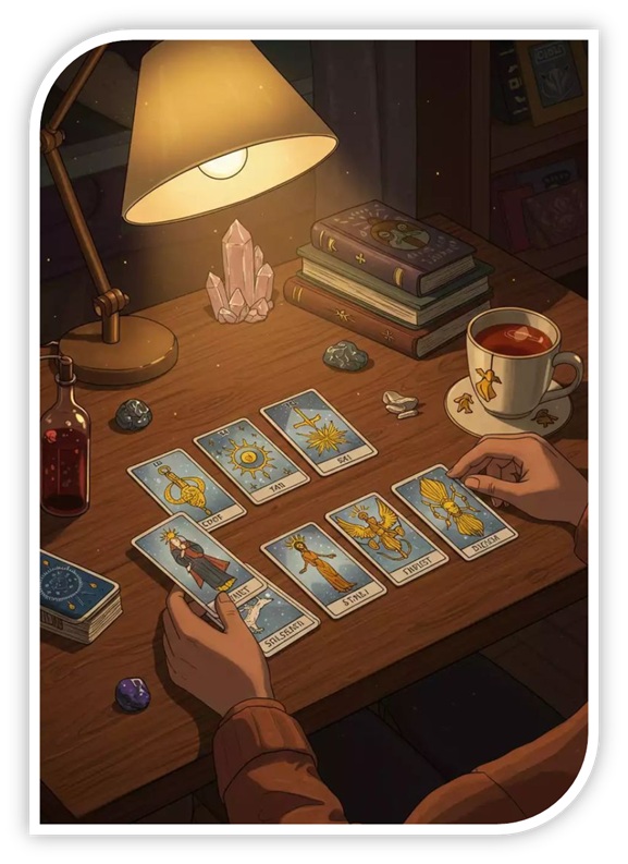 Ми формулюємо ваше запитання та розкладаємо карти. Я пояснюю значення символів у контексті вашої ситуації. Ви отримуєте не просто відповідь, а цілісне бачення та рекомендації, які допомагають зробити правильний вибір.